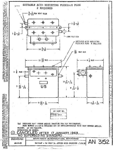 A friend that works for a different aerospace company from me, came up with a copy of the AN3152 battery. Holy smackers it’s small for what all it powers. Basically it’s 5″x 9″x 11″ tall.